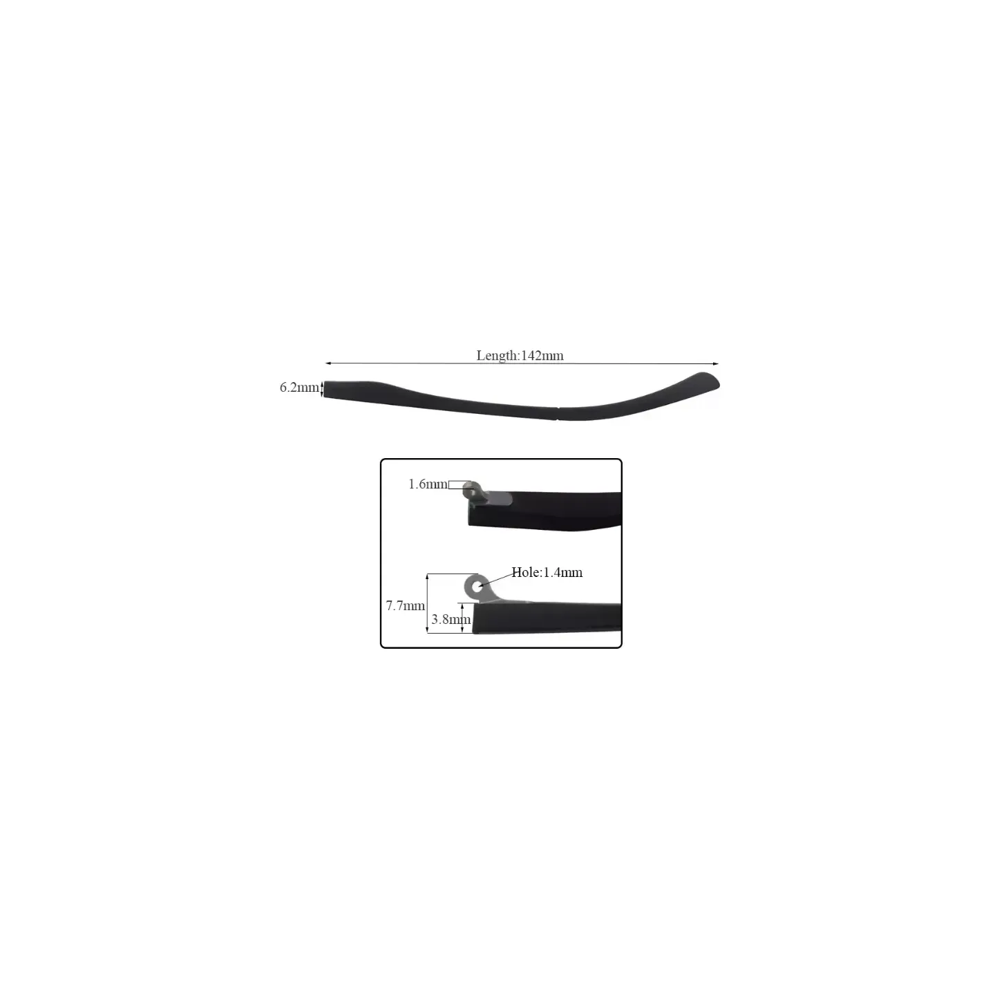 The temple is made of durable and flexible TR material, with a hollow inner structure that ensures a lightweight and comfortable fit. The convex hinge provides a stable yet flexible connection, enhancing durability and wearing comfort. Its multifunctional design makes it compatible with a wide range of eyeglass frames.