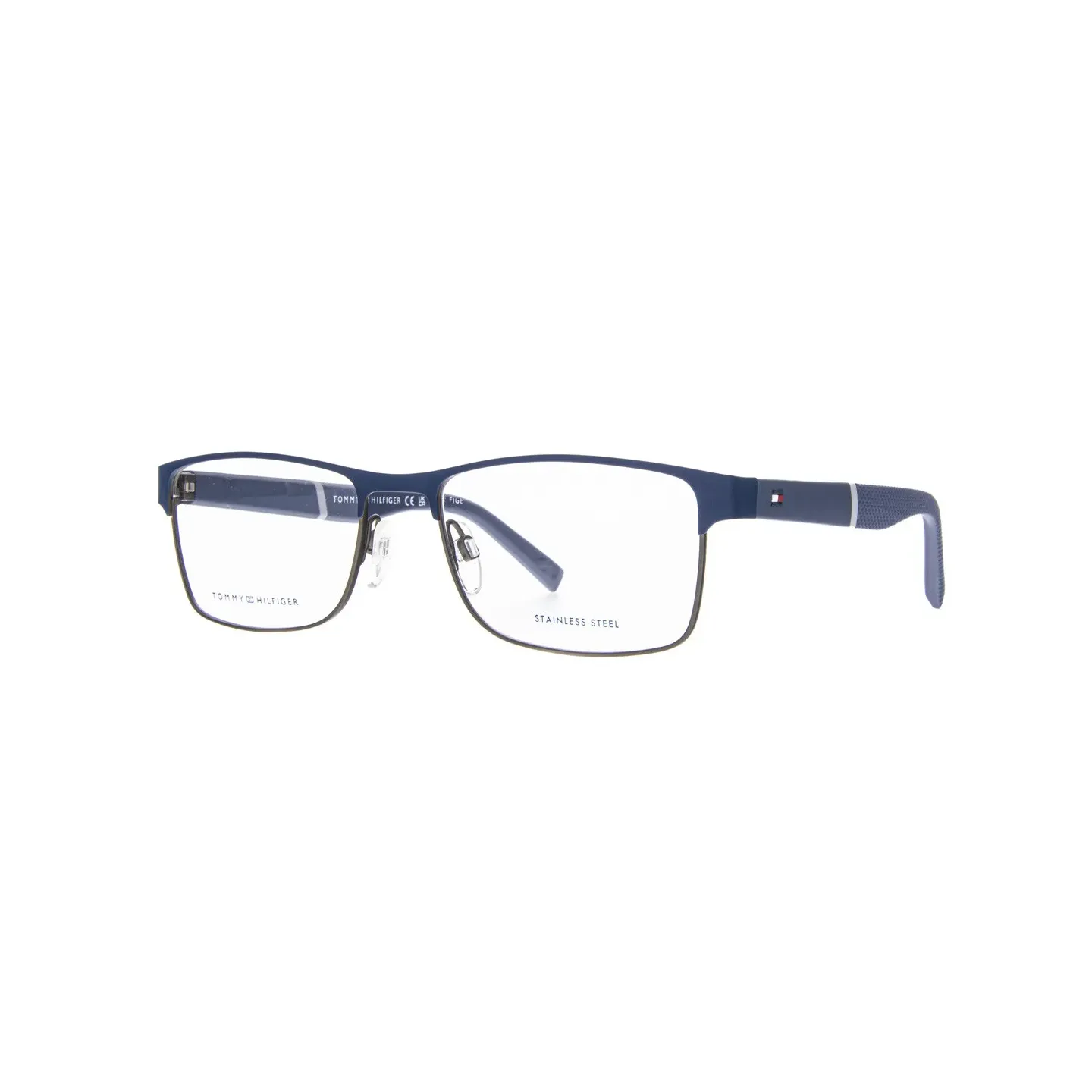 Tommy Hilfiger szemüvegmodell letisztult és modern megjelenést kínál, amely ideális a mindennapi viselethez. A sötétkék színű, rozsdamentes acélból készült félkeretes kialakítás elegáns, mégis sportos hatást kelt. A szárak gumírozott, texturált borítással rendelkeznek, így kényelmes viseletet és biztos tartást nyújtanak. A márkára jellemző diszkrét logó tovább növeli a prémium érzetet.