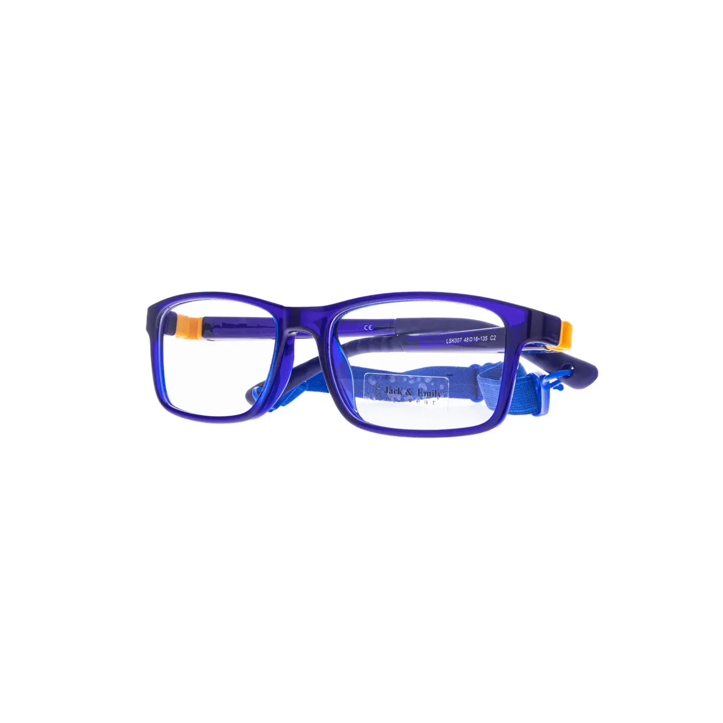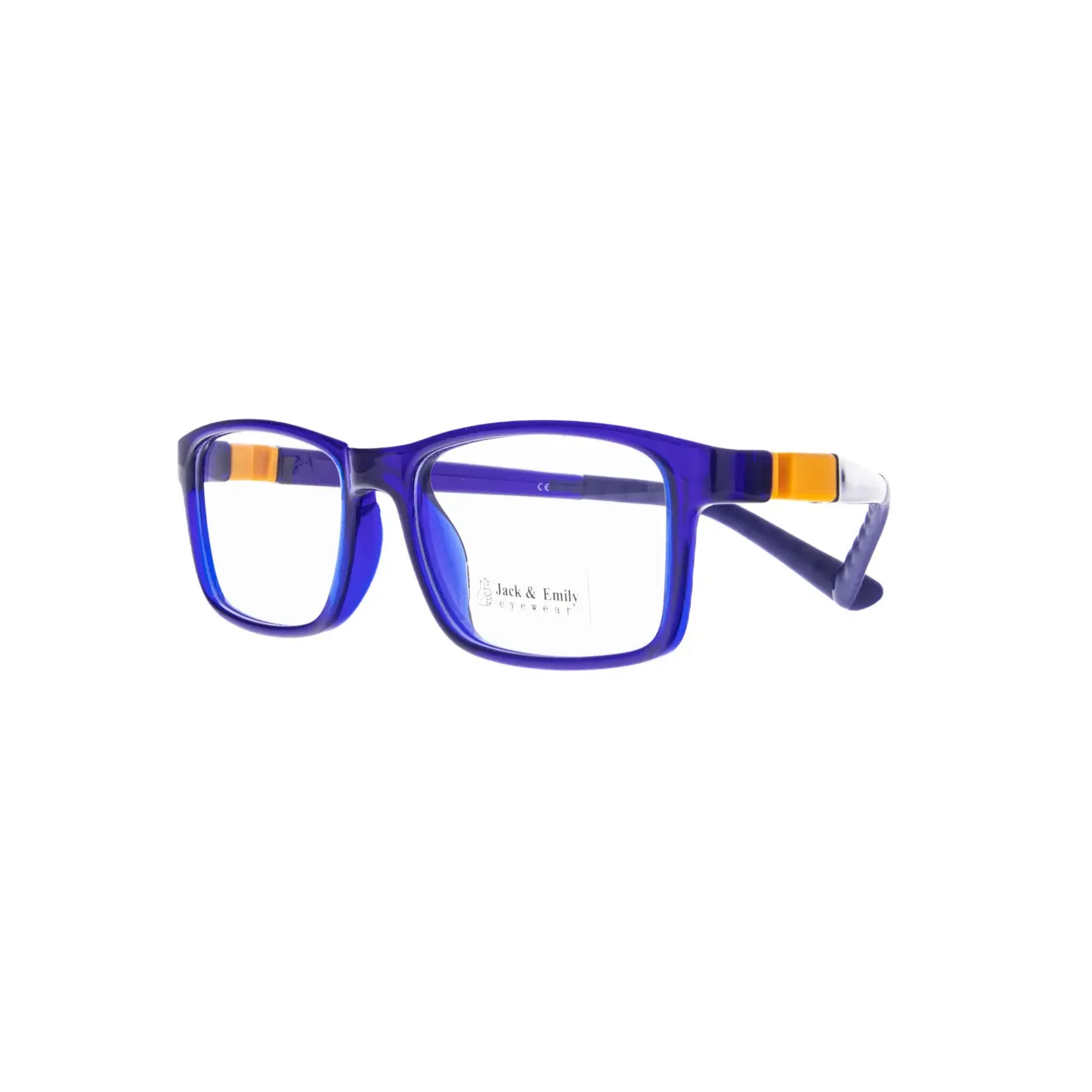 Jack & Emily szemüvegkeret fényes kék színű szögletes műanyag kialakítással rendelkezik, amely kényelmes és tartós. A szárak a kék árnyalatainak kombinációja vidám és modern megjelenést biztosít, míg a rugalmas szárcsuklók extra kényelmet és sztrapabíróságot garantálnak. Ideális választás, akiknek fontos a stílus és a kényelem.