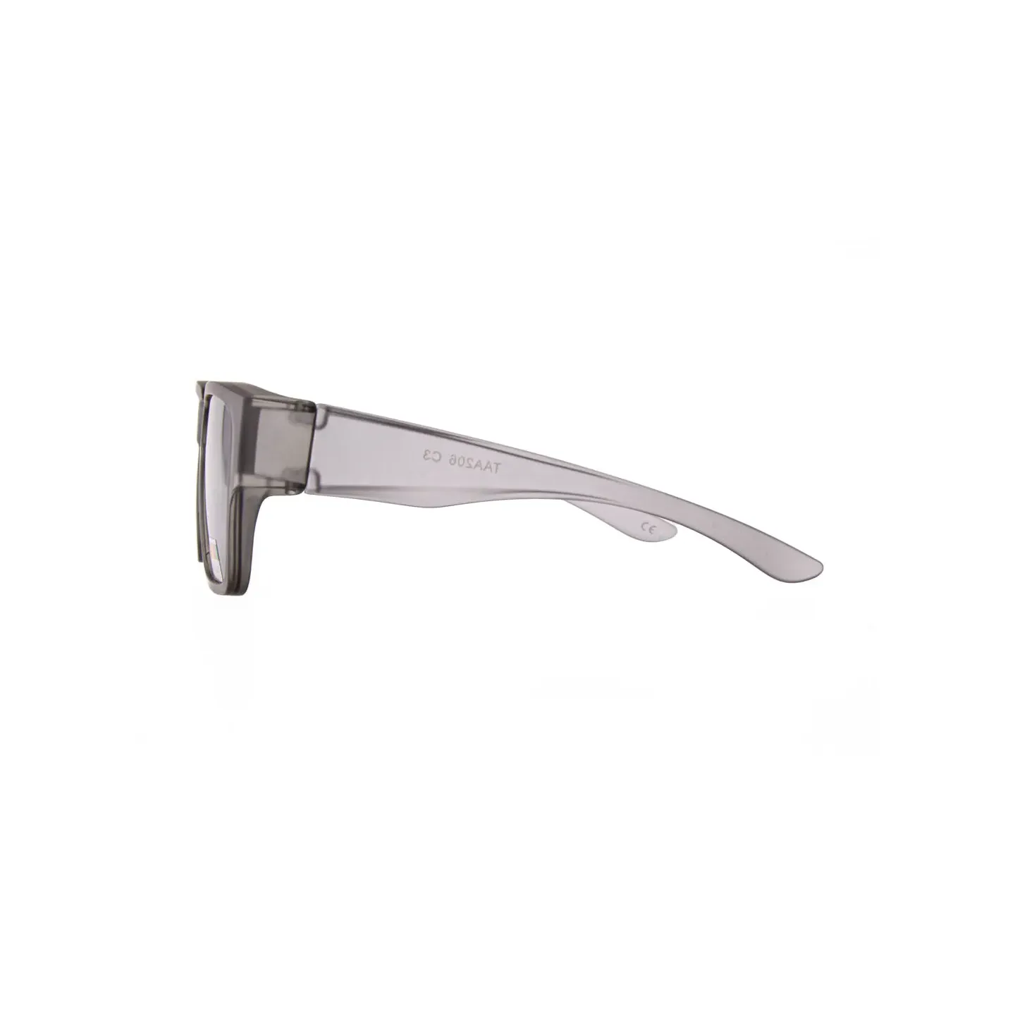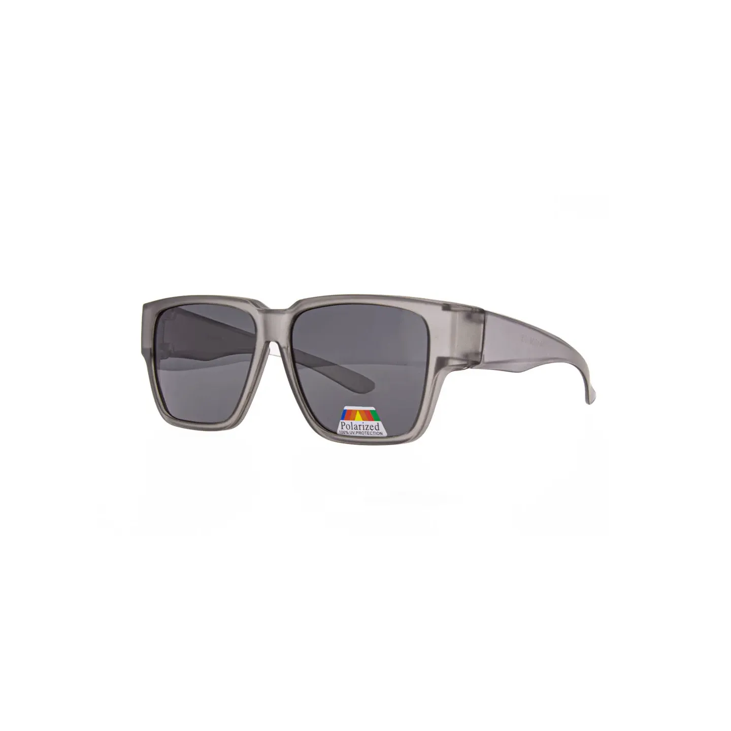 Modern IVISION szemüvegre helyezhető napszemüveg karakteres, szögletes formájú, áttetsző szürke kerettel és szürke, polarizált lencsékkel. 100%-os UV-védelmet és csökkentett tükröződést biztosít, így kényelmes és tiszta látást nyújt napos időben. Stílusos és praktikus választás.