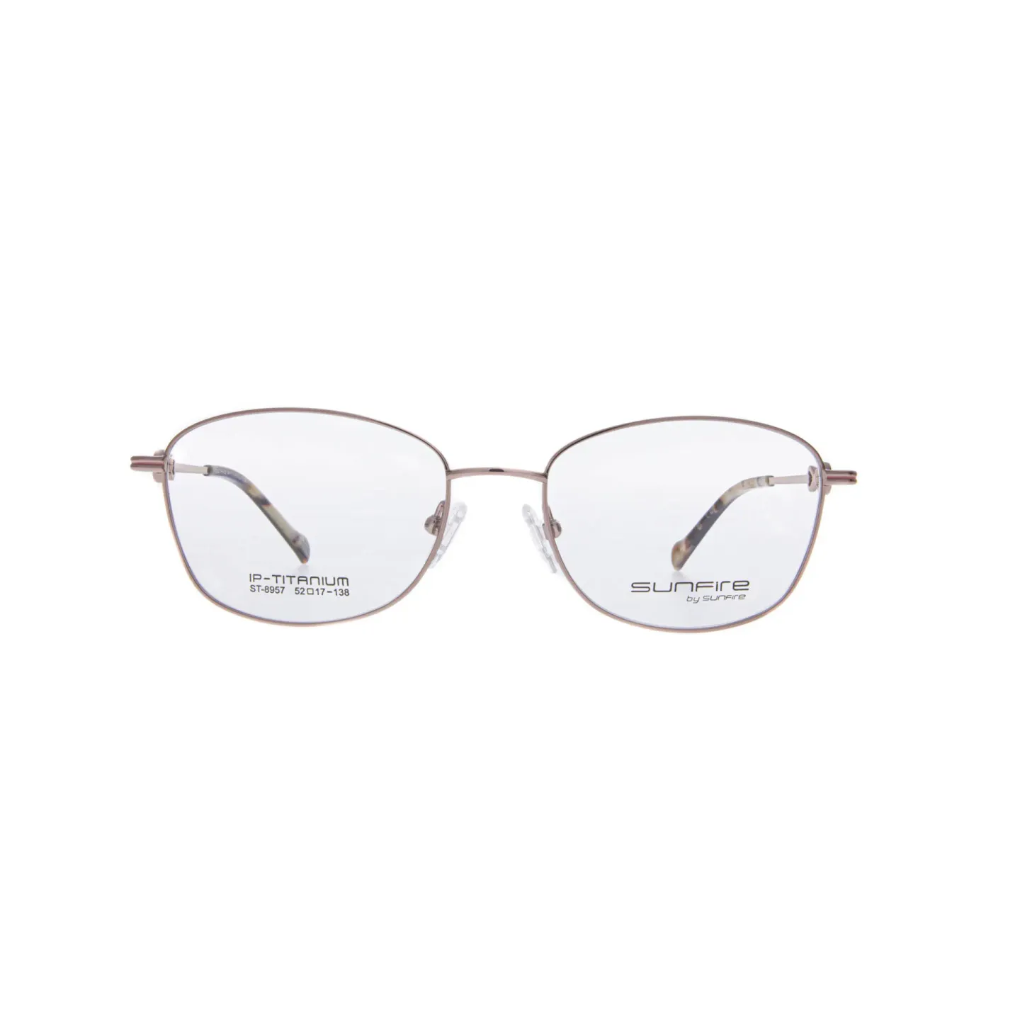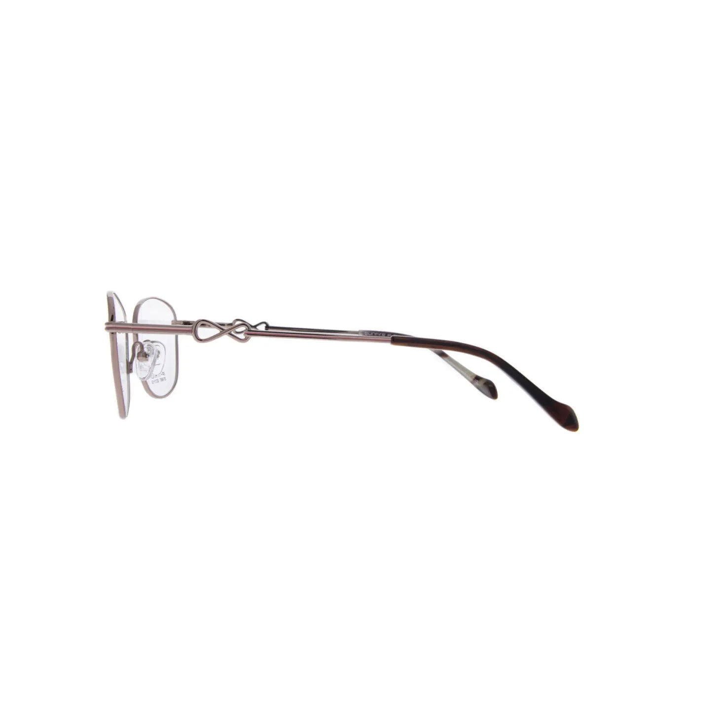 Teljes női szemüvegkeret, világos bronz színben, rugós szárakkal. Kiváló minőségű titániumból készült. Könnyen viselhető, letisztult formavilággal, és megfelel minden mai trendnek.